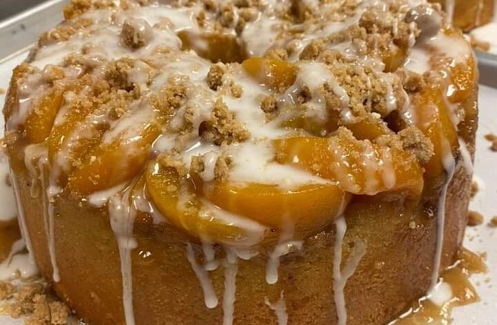 Peach Cobbler Pound Cake is a delightful dessert that combines the best of two beloved treats: the classic pound cake and the comforting flavors of a peach cobbler. This recipe creates a moist, tender pound cake infused with juicy peaches and topped with a buttery cobbler-like streusel.