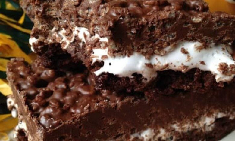Once melted stir in Rice Krispies and spread evenly over mallow crème.