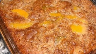 Ingredients: 1 can peaches, sliced, drained 1 cup Bisquick mix 1 cup milk 1/2 teaspoon nutmeg 1/2 teaspoon cinnamon 1/2…