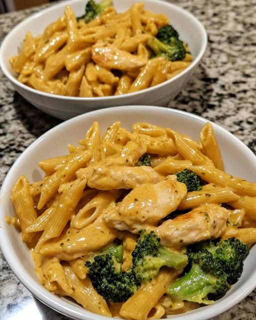 This isn’t just another creamy pasta—it’s **elegant simplicity on a plate**. With juicy chicken, vibrant green broccoli, and a silky sauce made from **heavy cream and freshly grated Parmesan**, every bite feels indulgent yet balanced. It comes together in **one pot and one skillet**, minimizing cleanup while maximizing flavor.
