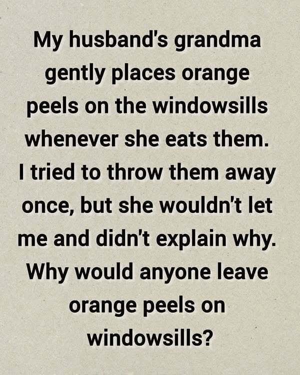 - Place **dried or fresh tangerine peels** near window frames to deter ants, spiders, and flies. The citrus oils act as a natural insect repellent.