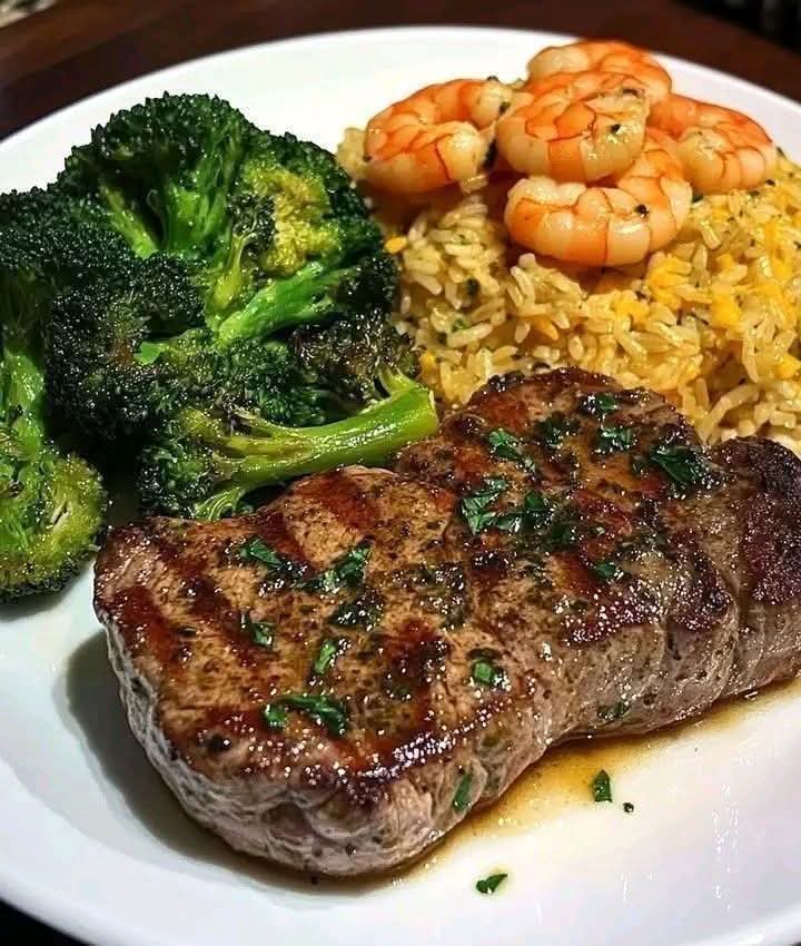 Each element complements the others beautifully: buttery, garlicky steak pairs with zesty shrimp, while cheesy broccoli brings the perfect creamy finish. Whether you’re cooking for a special occasion or simply treating yourself to a five-star dinner at home, this recipe delivers bold, unforgettable flavor in every bite.